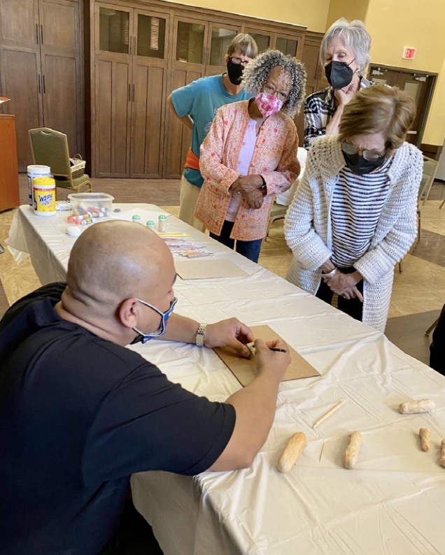 In Creative Aging, VAPAE teaching artists provided enriching arts lessons to a beloved population: seniors and elders. Launched in Spring 2021, the program brought arts experiences to a cohort of seniors ranging from emerging to expert artmakers, some of whom were reconnecting with a creative practice they had set aside for many years. The program also served as a community anchor to VAPAE’s newest undergraduate special topics course of the same name, first offered in Fall 2021.